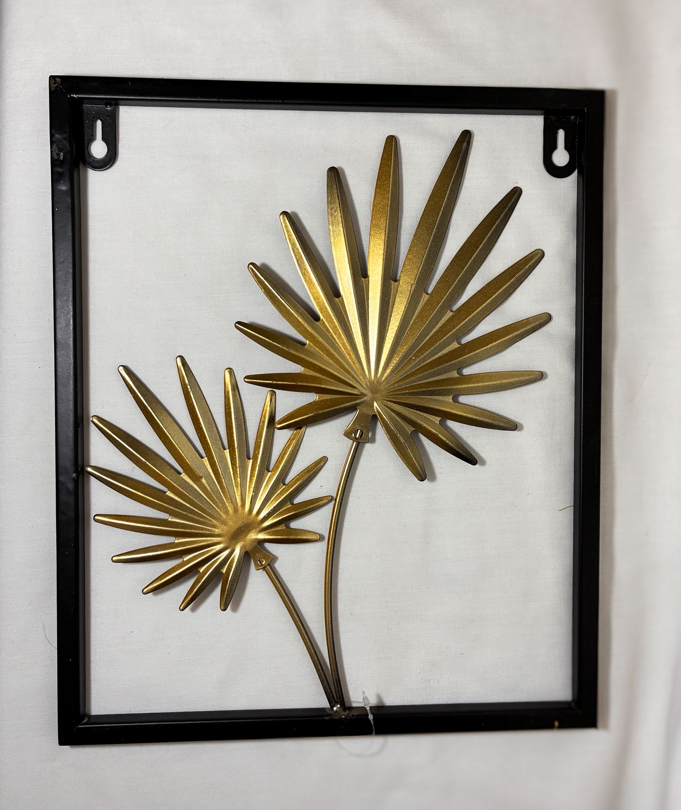 Eleva la estética de tus paredes con este imponente cuadro metálico de hojas. El diseño presenta un delicado follaje en color dorado brillante que resalta con fuerza sobre un marco estructural de metal negro.